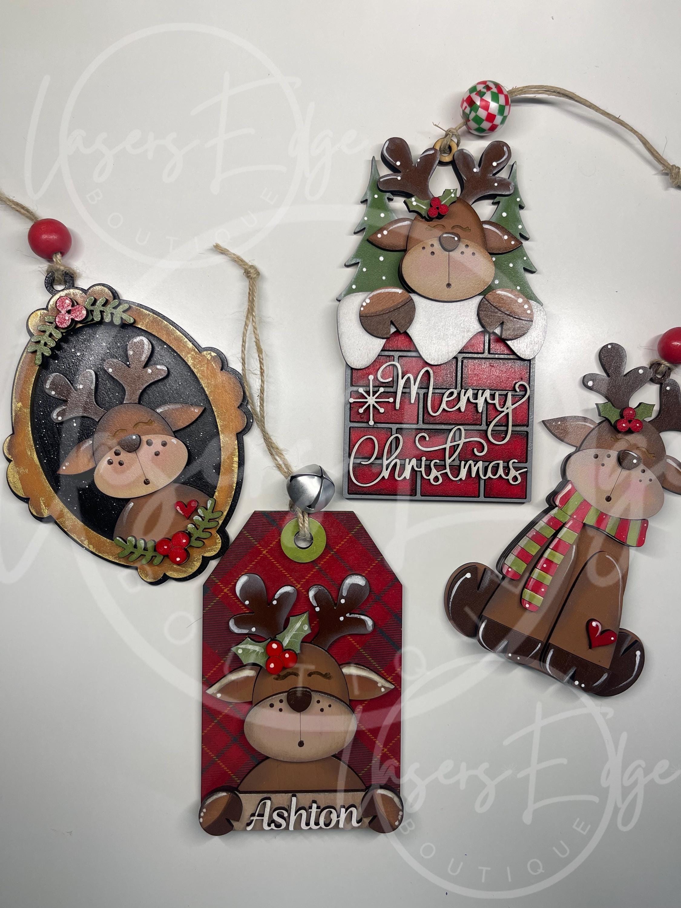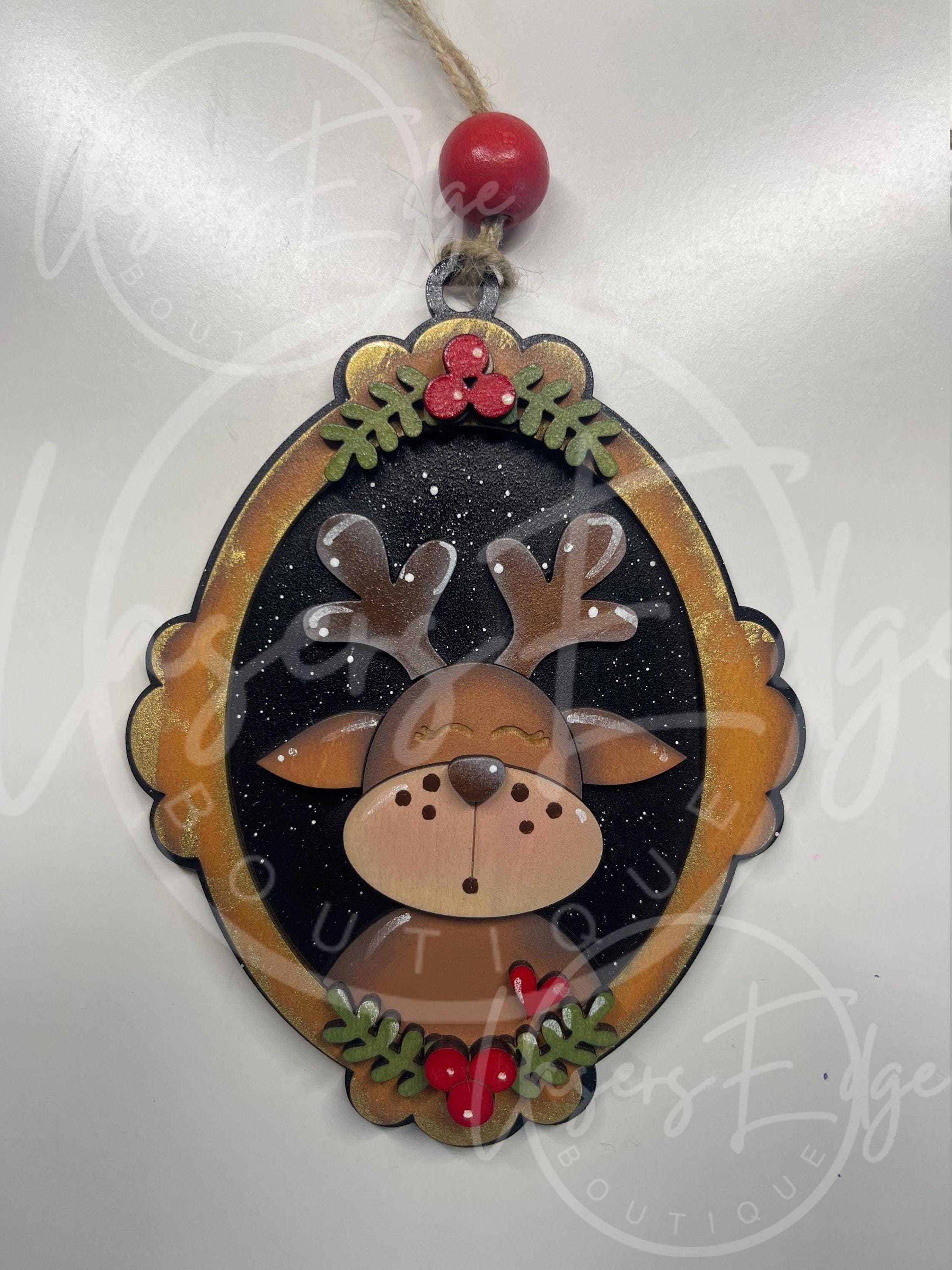 Reindeer Hand painted wooden Christmas ornaments.